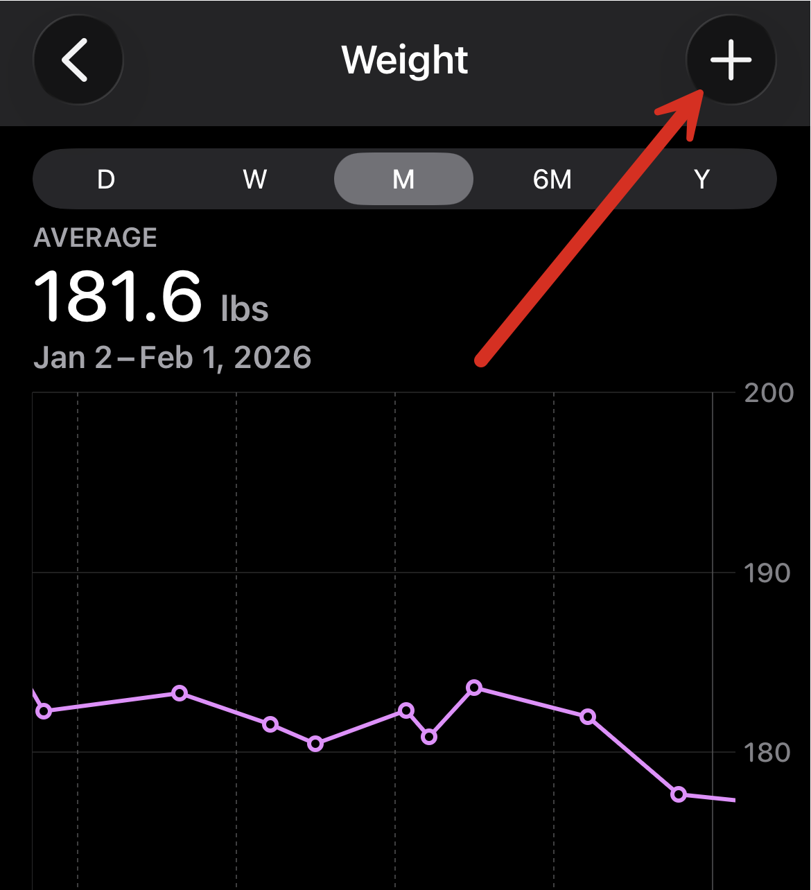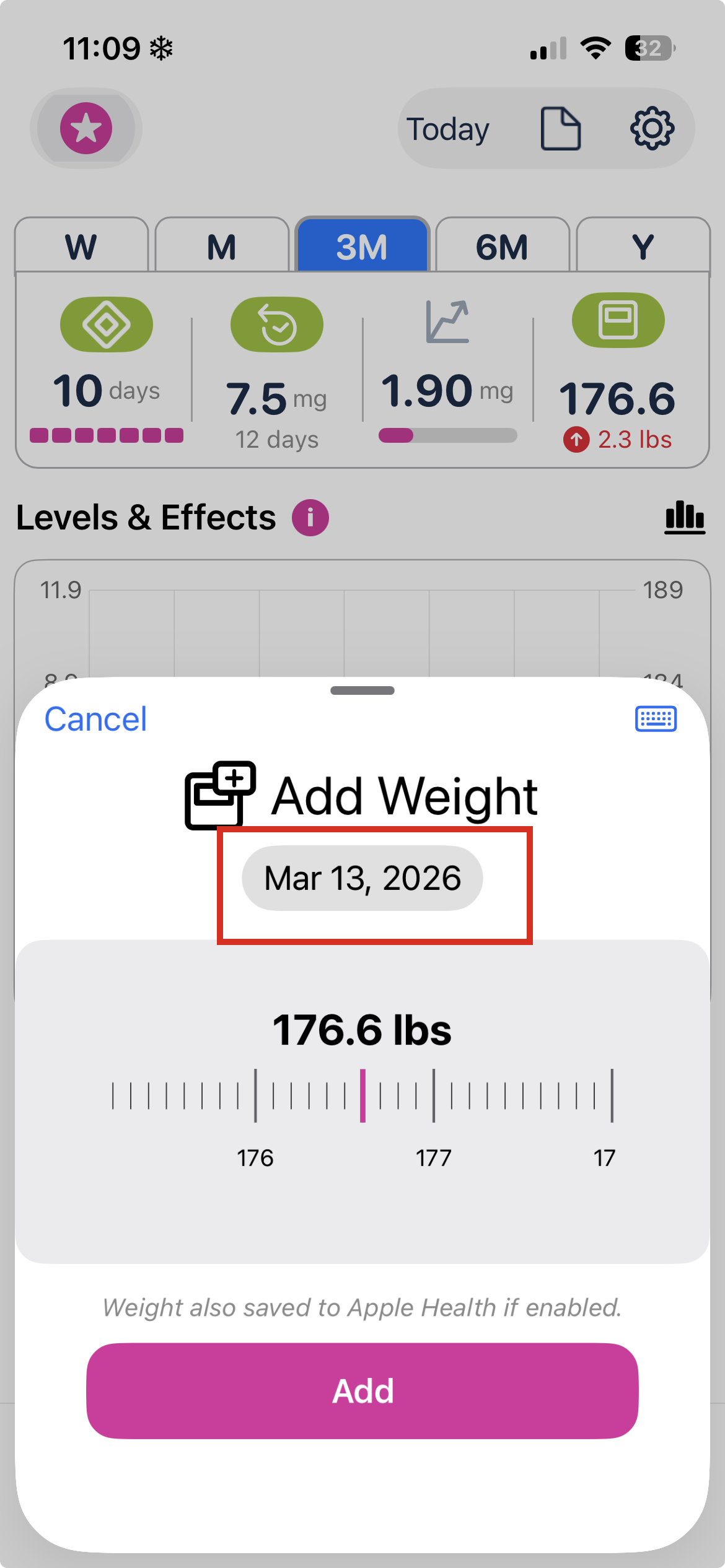 - Enter your weight and tap Add — it'll be saved for the date you selected, not today.