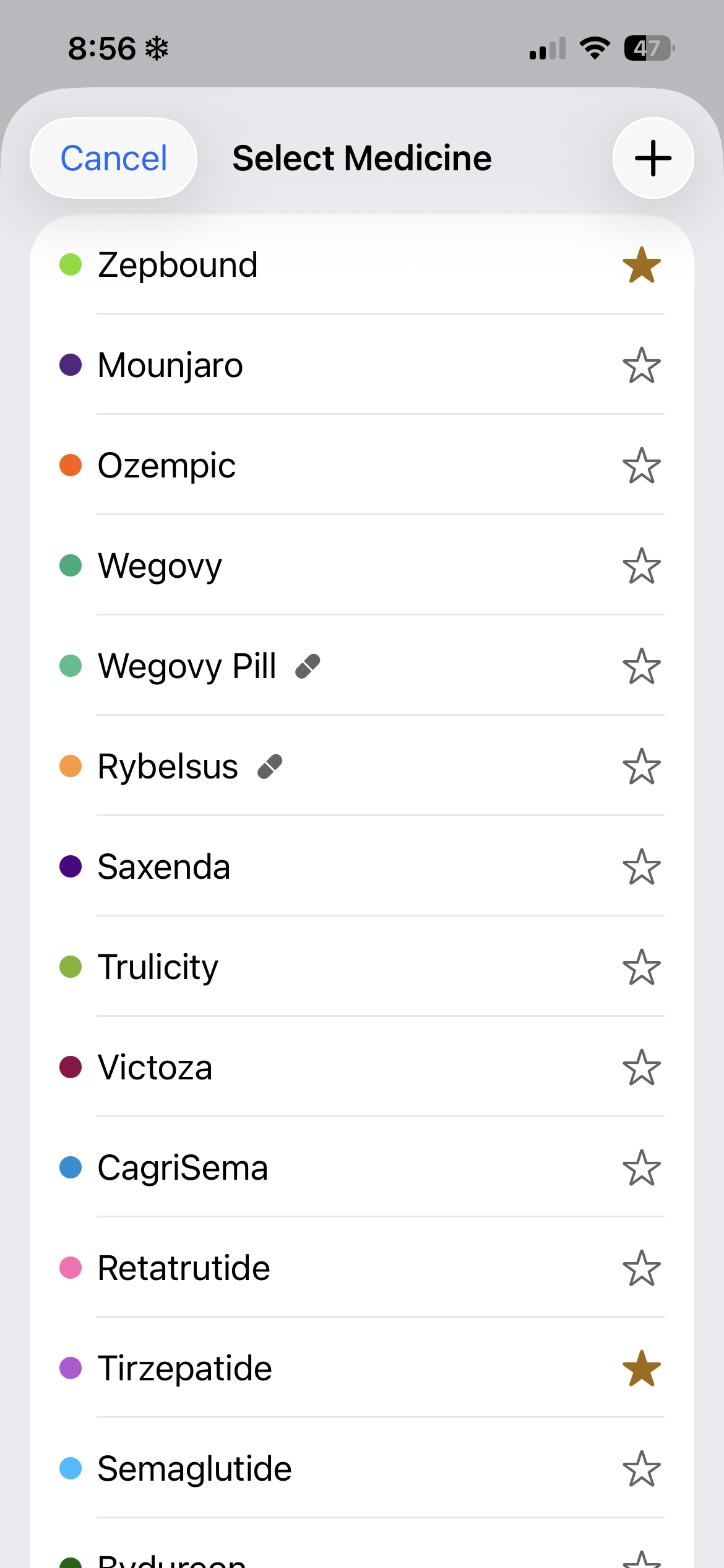 If you take more than one GLP-1 medication you can now star your most-used medicines so they're always one tap away on the Add Shot screen.